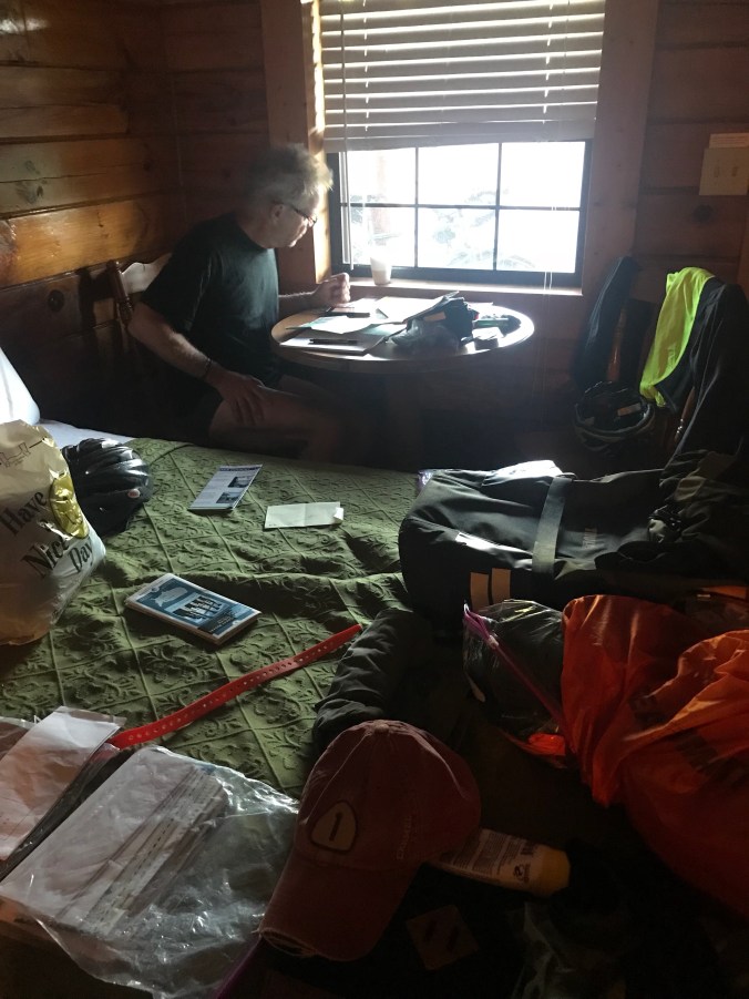 We checked into our no frills hotel on the highway, adjacent to a Sunoco and really nothing else, and washed our biking clothes in the bathtub because there were no laundry facilities. Paul spent nearly two hours driving to find us, had a cooler full of cold drinks and snacks, picked us up and took us to the closest town for dinner at a roadhouse. While the food was good, the conversation was even better and Paul’s big laugh and great stories about life on the road as a musician and his music copyright work made the time go too fast.