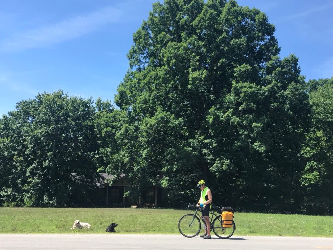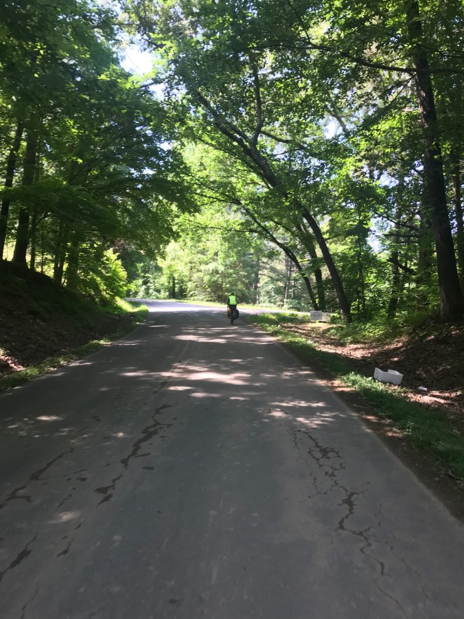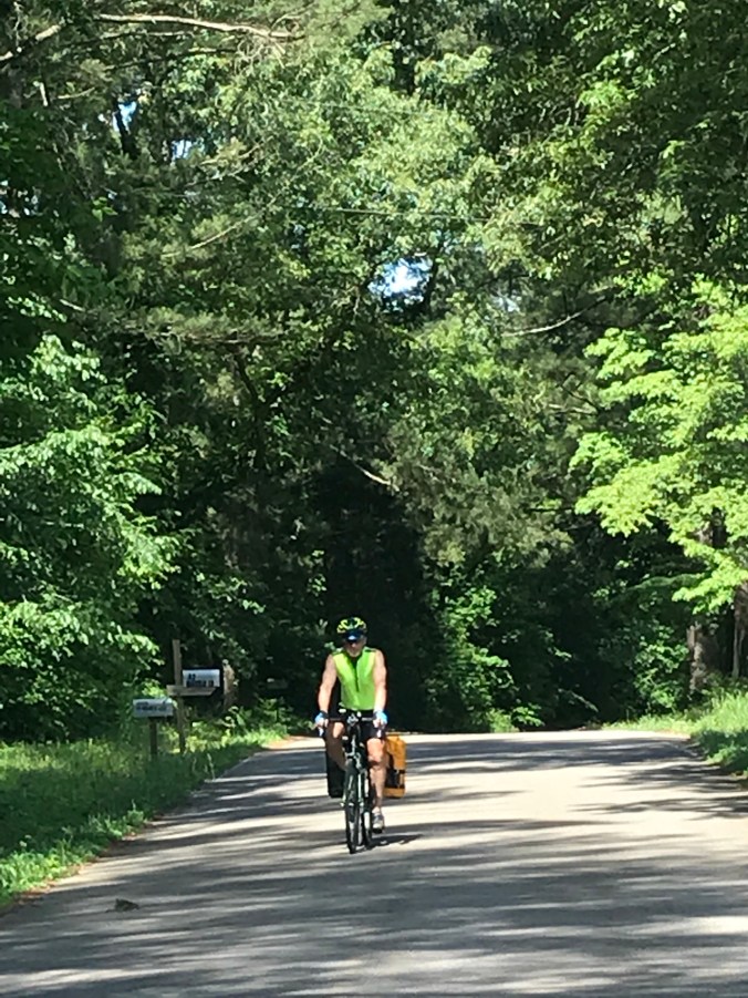 I am not really sure where this hotel is as I am writing this outside of our room, listening to the trucks on I40, but it is on our route … we had about 65 miles of lovely biking in Tennessee as we are making our way to the Natchez Trace Parkway.