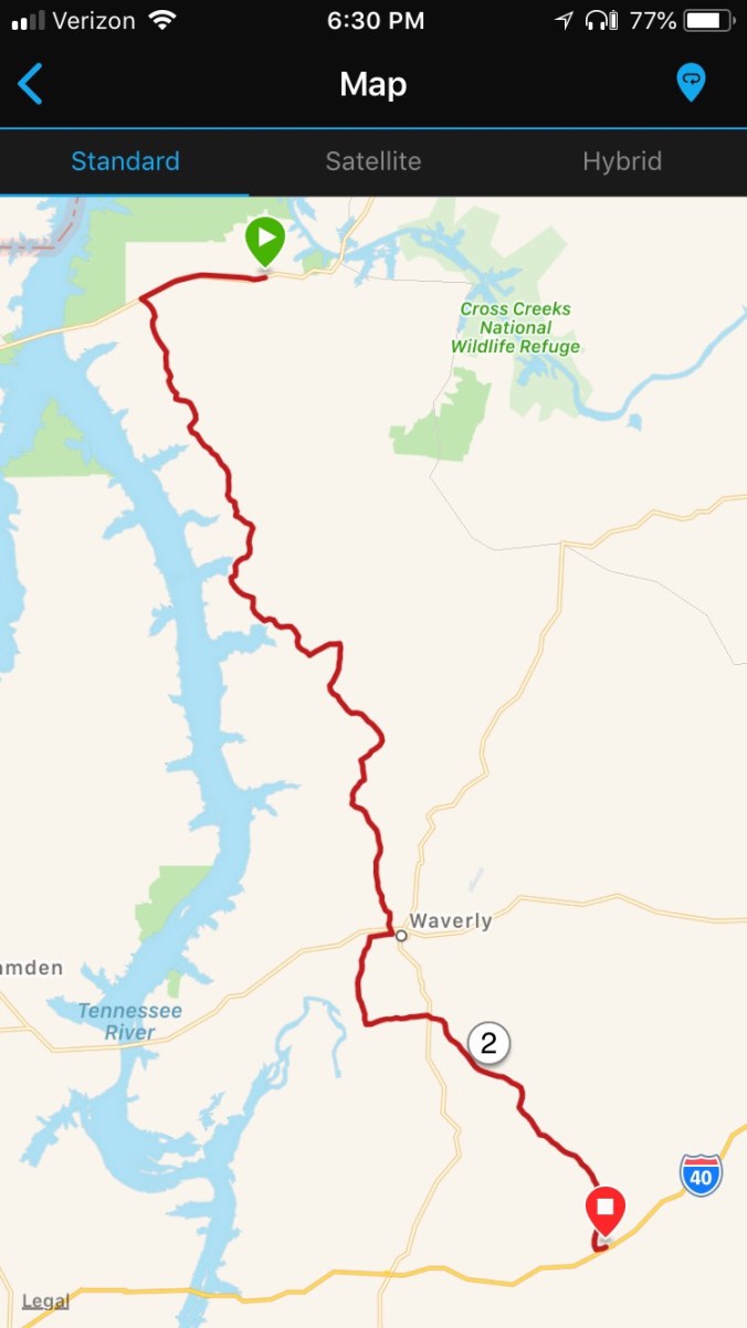 At one point in the morning Dan said “this is like the forest primeval,” and it was, with beautiful, old pines and oaks shading the road, and very few homes as we continued through the Land Between the Lakes with lots of signs pointing to resorts and restaurants with names like Fat Daddy’s and Pirates that were a couple of miles away on the lake.