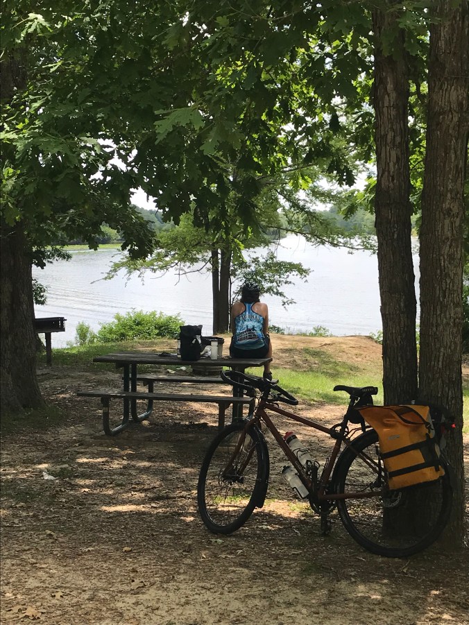 He asked about the Mississippi River Blvd., and asked about the Ford plant (“didn’t y’all have the plant shut down up there?”) and asked us if we knew this nun, and it took us a couple of minutes to realize that she was a fictional character. He had such a strong sense of place and people from Sandford’s books and an interest in visiting the Twin Cities as a result. It was amazing to hear these place names from home when we feel so very far away from there right now…and our encounter came at an interesting time, as I have been thinking deeply about the many authors whose work has created my understanding of the places we have passed through in nearly 1800 miles of cycling.