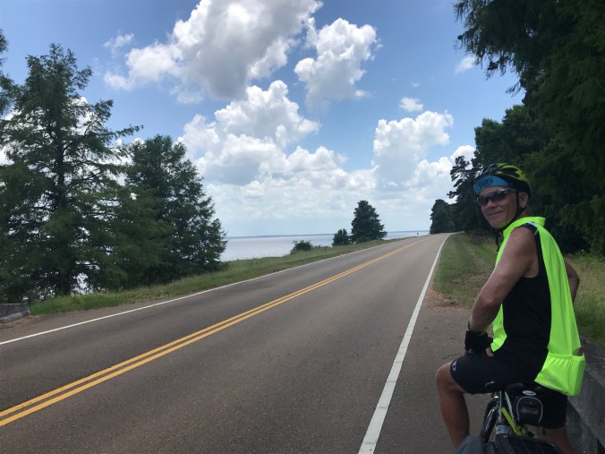 And then we got closer to Jackson, and the traffic was crazy, and then we made it to Clinton, and the traffic was also crazy, and we got off the Natchez Trace and rode across busy roads to get to our hotel, where we were checked-in by a fellow who noticed we were from St. Paul and who spent about ten minutes telling us about the plots and characters and settings of the books by one of his favorite authors, John Sandford, the Minnesota mystery writer.