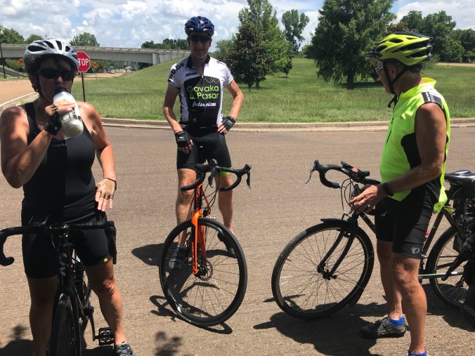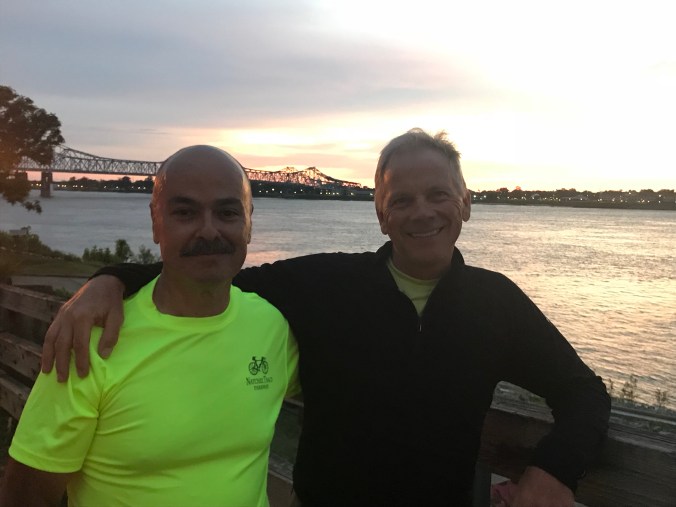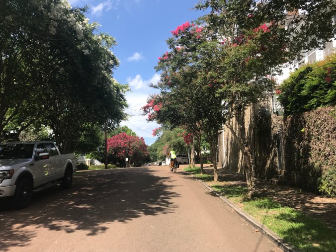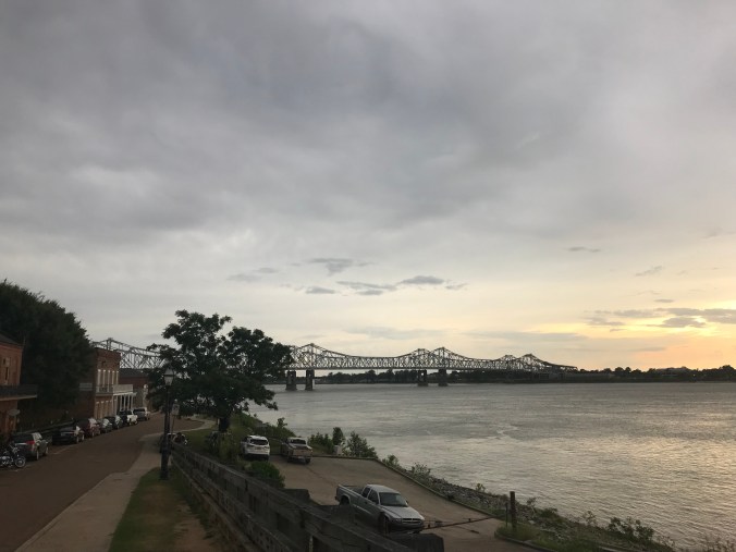 The trip was a short one by comparison to other days though we felt a bit tired and ready for a break, which we experienced as soon as we entered Natchez. It is a beautiful river city, with amazing historic homes and streets lined with flowering trees and bushes, and we are staying at the Dunleith Inn which is quite posh by comparison to most of our accommodations this far. We are in the Dairy Building, and evidently the inn’s more notable guests (Mick Jagger, Viola Davis, Octavia Spenser) have stayed in the main house. Loved having the pool to ourselves before walking back into town to meet our friend Carlos for dinner along the river. He has been great company, a true companion and a lively storyteller, and we look forward to seeing him again in a few days in New Orleans.