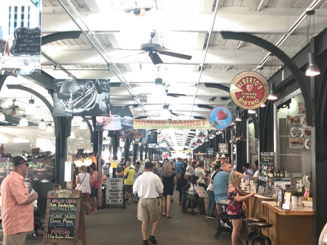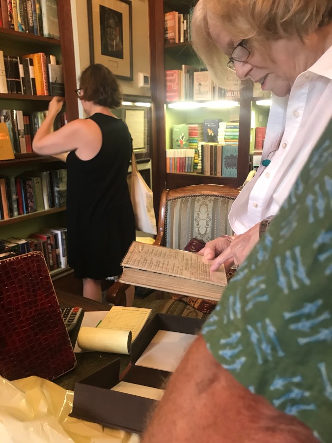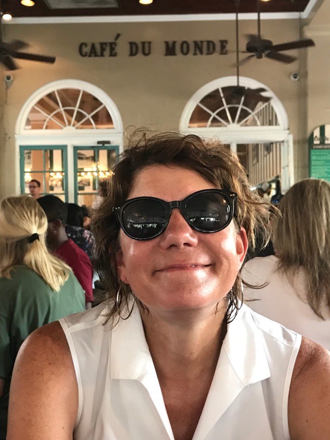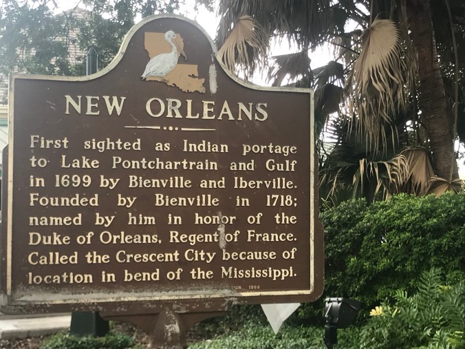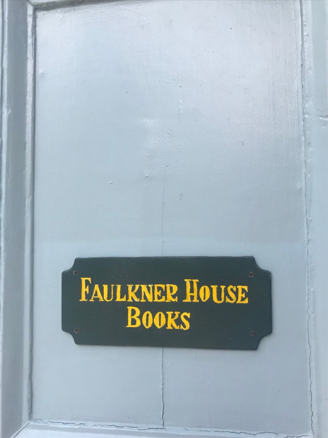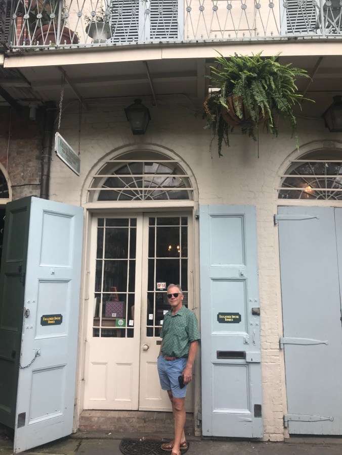 We woke early and walked down to the Mississippi river and it was humid – tropical, even, by nine o’clock. Overheard the captain of the steamboat Natchez direct his crew through their drills (“we will now do the man overboard drill”), watched stone carvers put the finishing touches on a monument that is a tribute to immigration (donated by immigrants who arrived here under other presidencies), listened to some good music in the streets including at the National Parks Jazz monument where they had free jazz yoga underway with a ranger playing the piano, walked through the farmers market, and eventually took a break for beignets and cafe au lait at Cafe du Monde. The highlight was our stop at Faulkner House Books off of Jackson Square, located in a home where the writer William Faulkner lived for a time. The store is small (max capacity: twelve customers), but impressive, with a great collection of new and rare books. We walked in, looking a little sweaty and ragtag, and Dan asked if they had first editions of Faulkner’s books, and the woman (Joanne) working there said they were in the locked case, and Dan said that well, we were not likely to be buying any, and Joanne said “and I had such high hopes.” That was the start to a great conversation and she later put Dan in charge of the store while she stepped out and returned with a rare first edition of The Sound and the Fury valued at over $19,000. “The past is never dead, it is not even past” is a Faulkner quote that we cited many times as we made our way through Mississippi along the Natchez Trace, and the complex, tragic characters in his novels seemed very real and close by during our time there, so it was great fun to visit the books and rare letters at that lovely little shop.