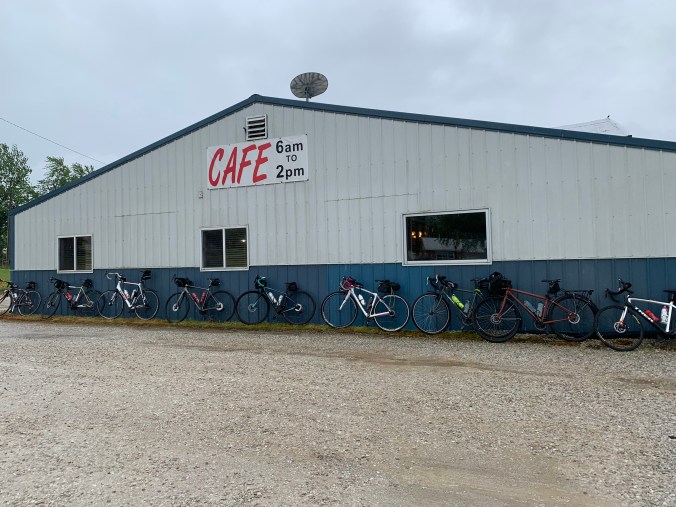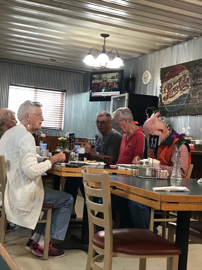 Lisa and I rode closer together than is typical for us and had long conversations. We stopped ten miles in for breakfast at the 3 36 cafe, and sat with the local farmers who gawked at us briefly and then went back to their morning chat while Fox News played on the tv in the corner. Several guys greeted us as they left.