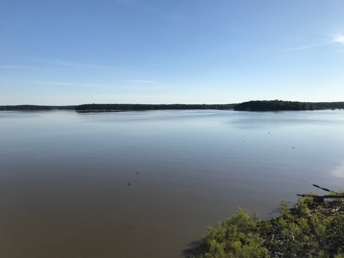 We wound up day two in Macon and camped by a small pond in the fairgrounds. A shuttle was taking people into town for dinner and after showers, we rode in. Macon is bigger and also less charming than Perry, the downtown full of abandoned buildings and a little sad. We couldn’t find a place to eat and ended up shuttling to the edge of town, and got fried chicken, potato salad and a bottle of wine for a picnic by our pond. We later heard that there was a good restaurant out there on the strip, but it was too late for us.