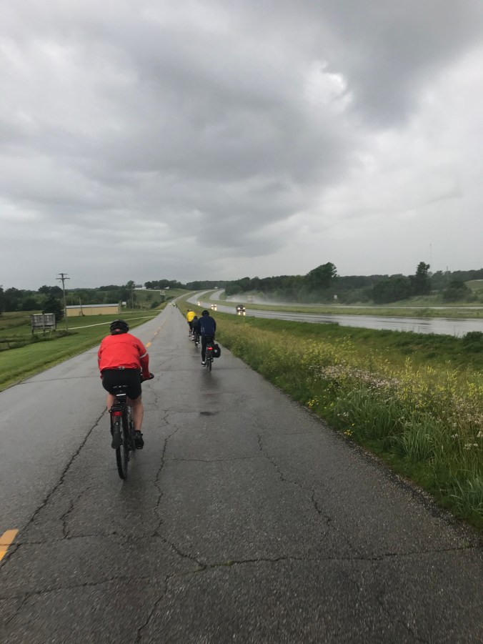 We rode from Perry to Macon on Tuesday and from Macon to the lovely town of Moberly in the rain Wednesday. We woke Tuesday in the Perry town park and had a large breakfast from the local food truck (which has been traveling with us and feeding us well.)
