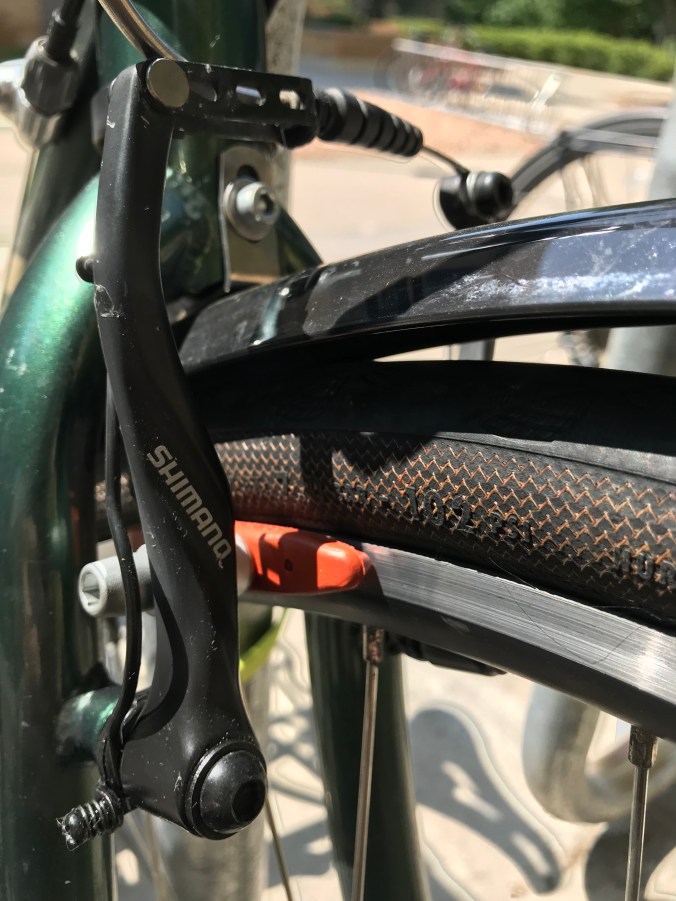 This will be a little outside my comfort zone – riding solo, working out the route on my own, navigating through Madison, Waukesha, Racine, and that endless commercial industrial megalopolis between Milwaukee and Chicago. Thankfully, Wisconsin has a great system of bike trails, and I think that much of my ride will be on them, making it a little safer. And remember that chart showing a circle labelled “your comfort zone” and outside that, another circle labelled “where the magic happens”? Also, my bike has lovely new salmon colored brake pads which make me happy.