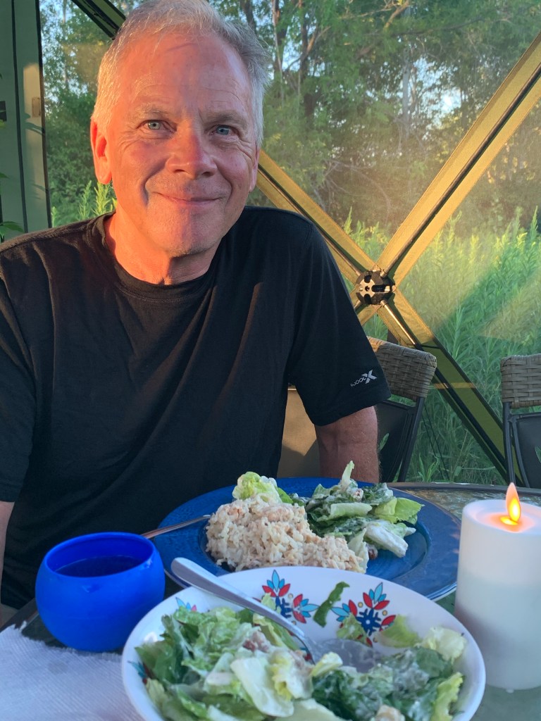 PS – we are now having breakfast – Friday AM – where we have a cellular signal again. We are going to be short on connections and probably power, too, on this trip, so our posts may be a little erratic. (Also, that yurt was incredible.)