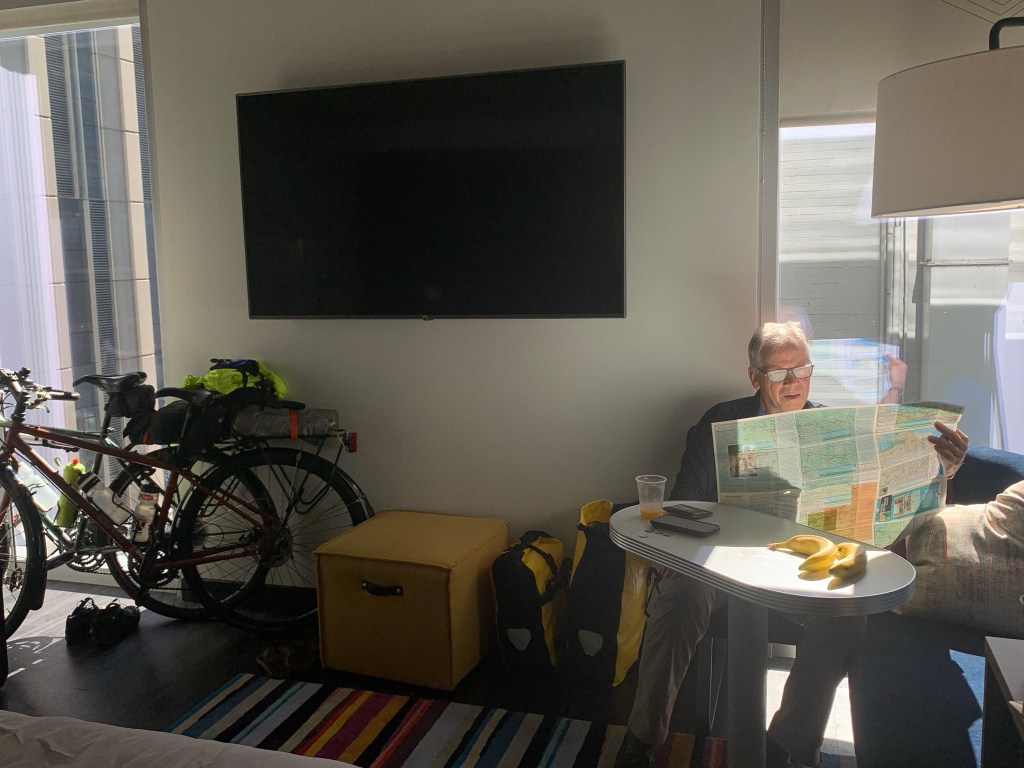 Overall it’s been so wonderful to feel that we are all starting to return to our usual activities after the pandemic, and it’s so amazing to be able to go to a museum, and take an Uber, and eat inside of a restaurant with friends again … and it’s also true that we are on a long distance bike ride and we are tired … and so after some naps, we ate an early dinner and spent time in our room checking in on people and things while listening to the sounds of the city, and preparing for what comes next.
