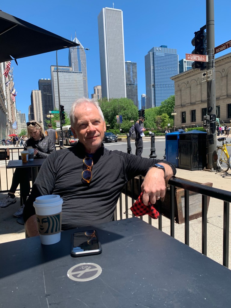 Dan’s smile when we arrived last night at the hotel continued throughout the day today. It was great to see the sun shining when we woke up, though it was still crazy windy. (And who would expect otherwise in the Windy City.)