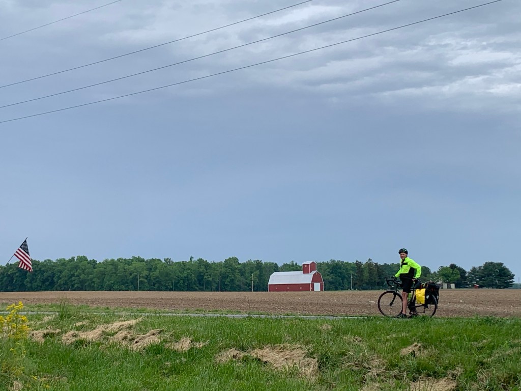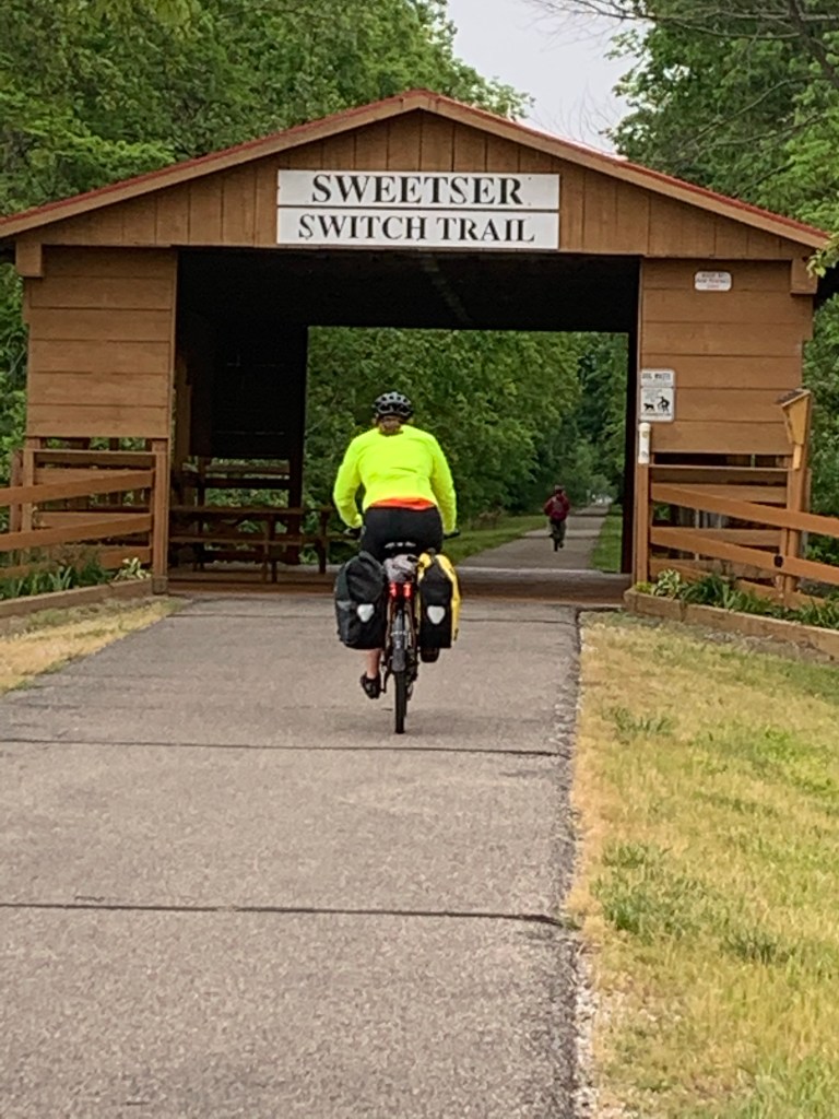 My observation: 100 miles is too much, at least for us. I think we’ll plan future trips with a limit of 70 miles a day. Here is the good news: we have no more of these long days planned – only a couple that are 80, but mostly 60 – 70 from here on out. Secondly, at a total of just under 700 miles, we have reached the halfway point of our trip, and now look forward to crossing Ohio and riding into Pittsburgh next weekend.