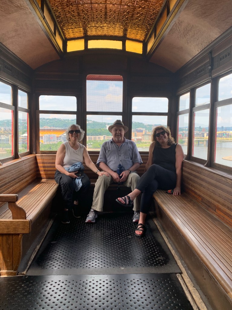 We woke and had coffee, then walked over to the Andy Warhol Museum (he is from Pittsburgh) and then met Larry and Holly for lunch and they took us over to one of the operating funiculars (after visiting the Mr. Rogers statue) and the back to Bike Heaven to pick up our cleaned and tuned bikes.