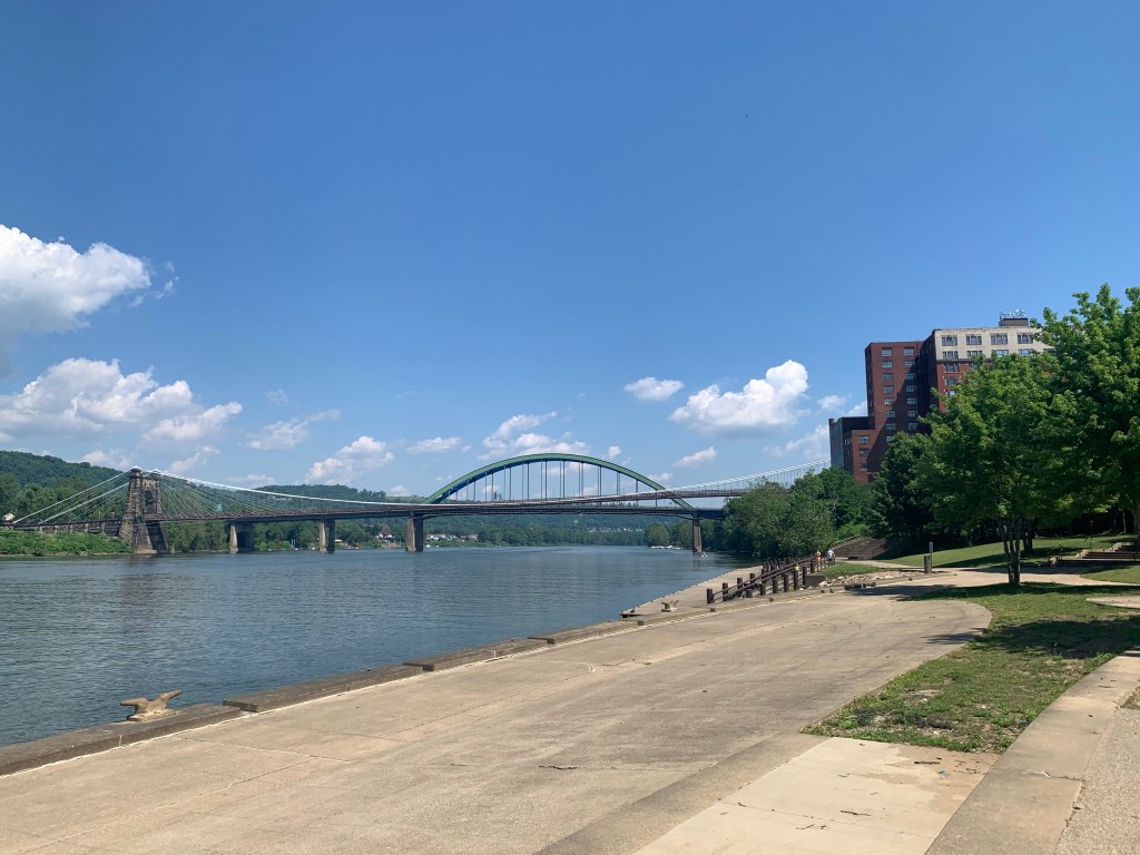 We’d already planned to meet my long time friend from college, Larry, and his wife Holly, while we were in Pittsburgh – they used to live here and drove down to visit while we came through. After the last few days, I was worrying a little about another day of riding into a huge city on our squeaky bikes with our creaky bodies.