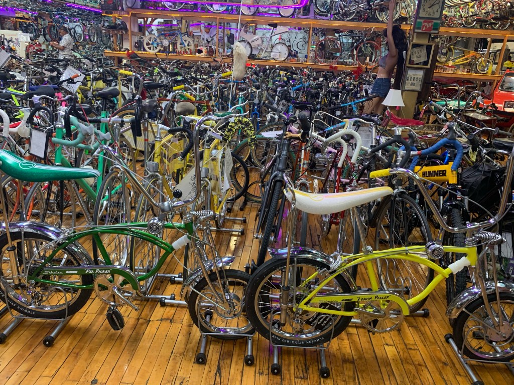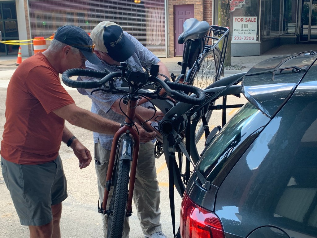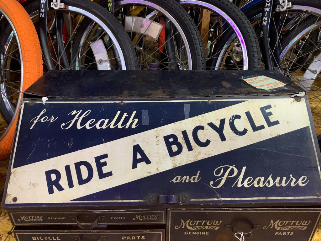 Larry was Dan’s college roommate at Luther, and he has been carefully following this journey, and wisely decided to throw their bike rack in the back of the car when they left home in NY to come to PA to visit friends, including us. We had looked for a bike shop in Pittsburgh that could do some work on our bikes while we would be on town and Larry drove us right to Bike Heaven, this cool bike museum and shop with room after room of collectible bikes, and bike sales, and repair services.
