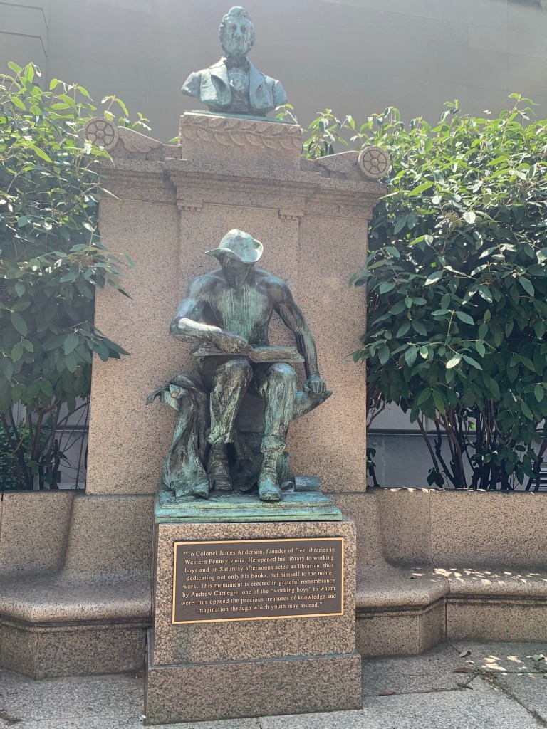 We had a lovely time and were delighted that Larry stopped to show us some favorite spots in Pittsburgh, including a visit to the first Carnegie library. (On our trip we have passed through many small towns where their public libraries are still in operation, and often in a Carnegie building.)