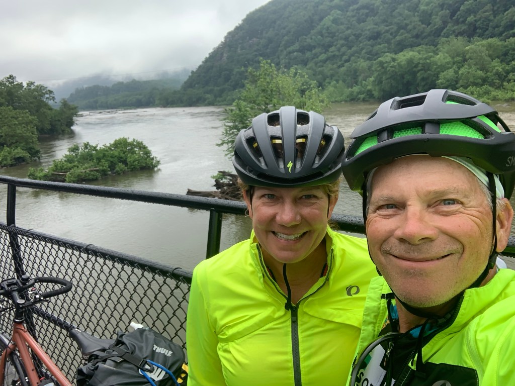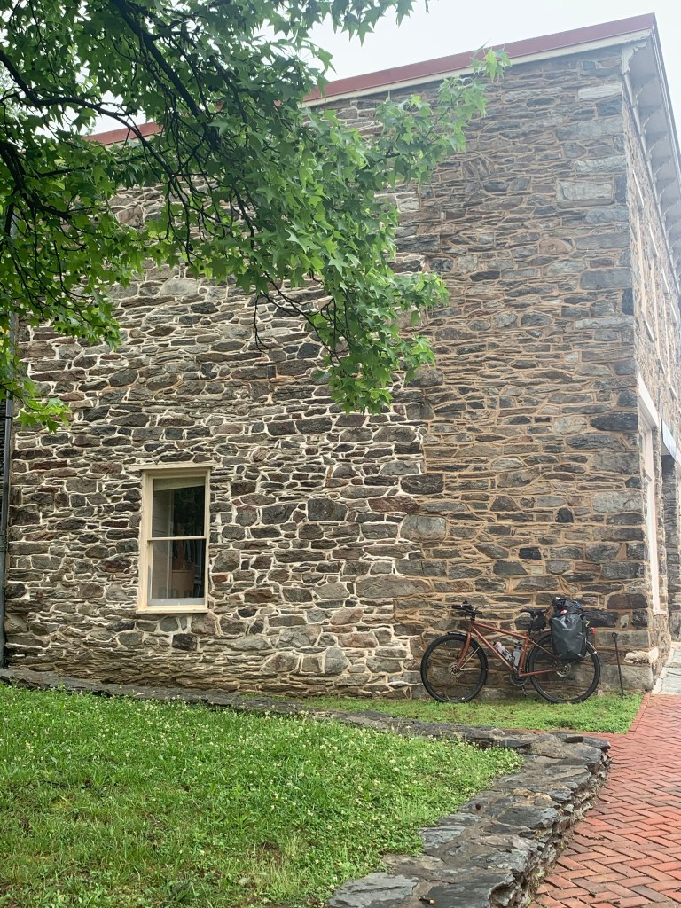 So Dan may have glossed over the fact that our hotel in Harpers Ferry was outside of town on the highway…and getting there was a several mile uphill ride with water cascading down a culvert on a slanted shoulder with trucks going 75 mph just inches away.