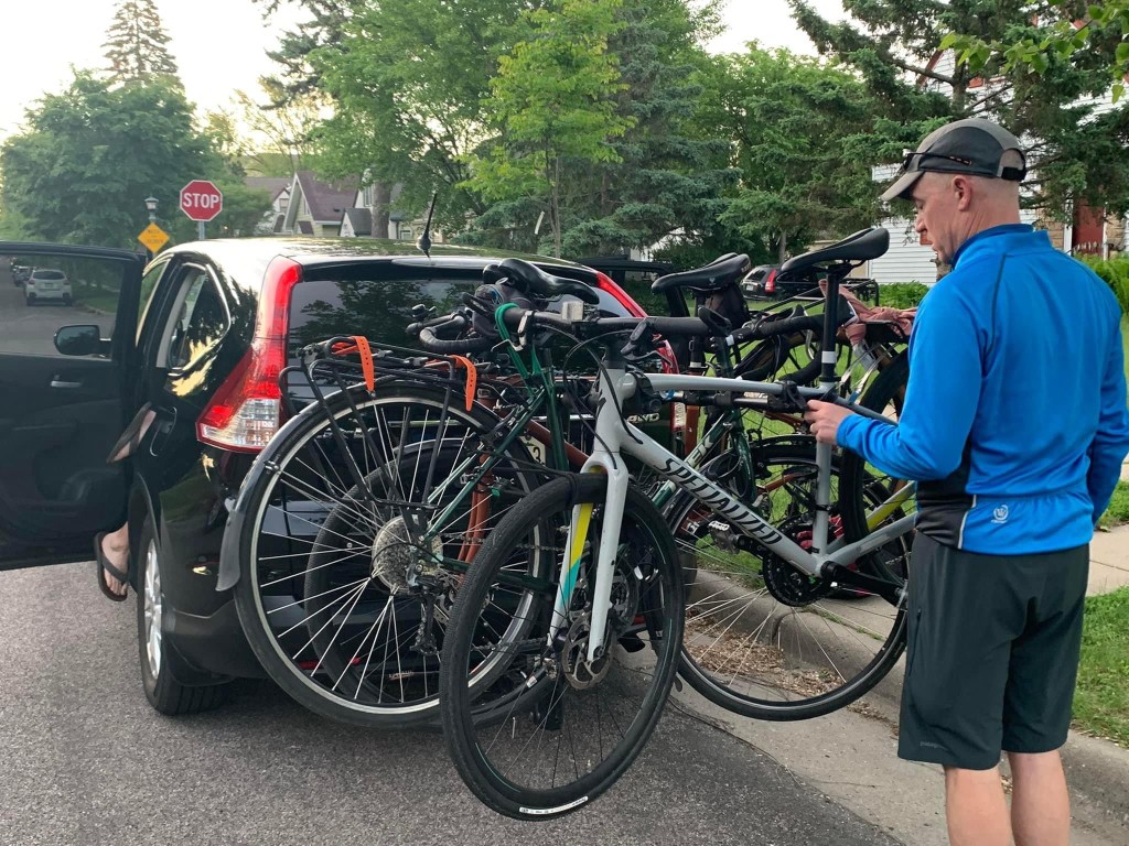 Let’s begin with yesterday, actually. We loaded up the car with bikes and bags and people and pulled out of St. Paul about 5:40 AM and headed east on Interstate 94. And then we drove 940 miles and arrived in Buffalo at 11:00 PM. It was a beautiful day to drive across Wisconsin but driving around the Chicago/Gary region is NEVER beautiful. Lisa took that shift since she is a Chicago native. The traffic seems to always be dreadful, and you find yourself trapped between huge trucks in the heat and sun, and hardly moving, ugh. Then we blasted through Indiana and to Toledo and Cleveland with Paul at the wheel. Dan took over for the last hour, when the rain started and it was very dark. It was a huge relief to arrive at the hotel with its big rooms and wonderful beds.