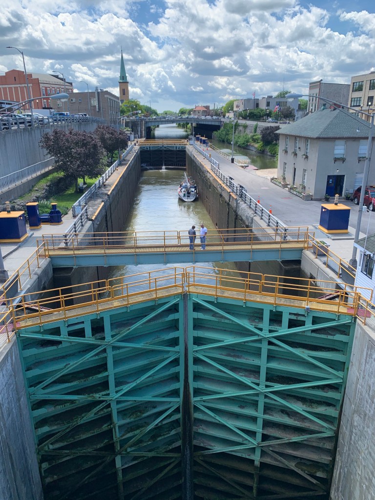 The Erie Canal in its day was an amazing engineering triumph which began to open up the interior of the North American continent and made New York City the main seaport in the nation as well as one of the most important centers of trade in the world. The Canal is still beautiful, lined with trees and lovely homes, and boats, including large sailboats making their way to Lake Erie.