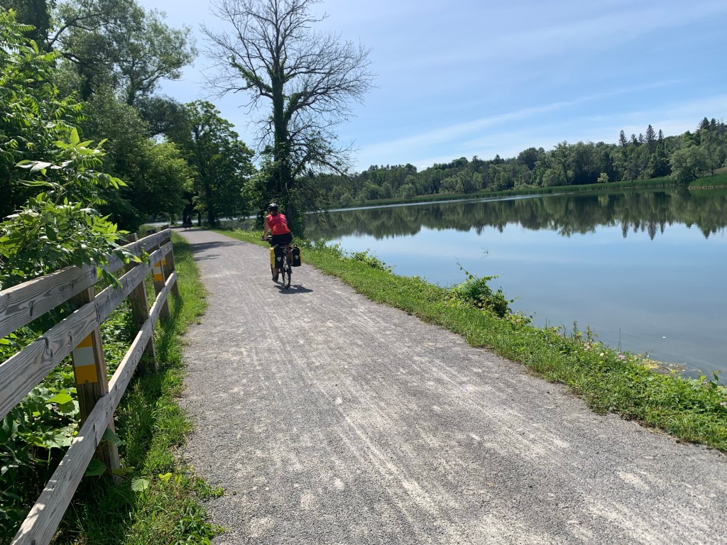 We had calculated a 61 mile day, but when our bike computers told us we’d ridden that distance, our phones told us we were still 7 miles out. How does a 61 mile day become a 68 mile day? I think the answer is that we use Google while we are planning, but when we are riding in reality, distances vary- due to slightly different routes, detours. etc. The mileages on our plan should just be considered estimates and are probably short