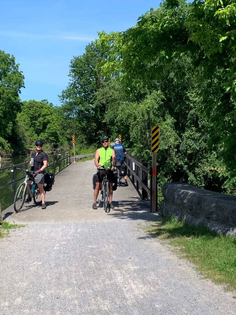 After riding a bit with Larry and Holly, we continued on with plans to stop for lunch in Rome. The signage along the trail, to be honest, is sometimes less than helpful. We supplement signs with an assist from Google maps, but it can get complicated if Google takes us off the trail and down city streets – it is trying to be helpful, but we prefer to stick to the safety of the trail as much as possible. When we aren’t sure which way to turn, we often find ourselves comparing results from our maps on our phones – “well, MINE says we turn right” – “but MINE says we turn left” while another person says “but the canal is THAT direction.” Lisa and I have travelled using maps from the Adventure Cycling Association- they are current and detailed and we miss them on this trip. I have some feedback for the bike planners of the State of New York which I may or may not share with them at some point.