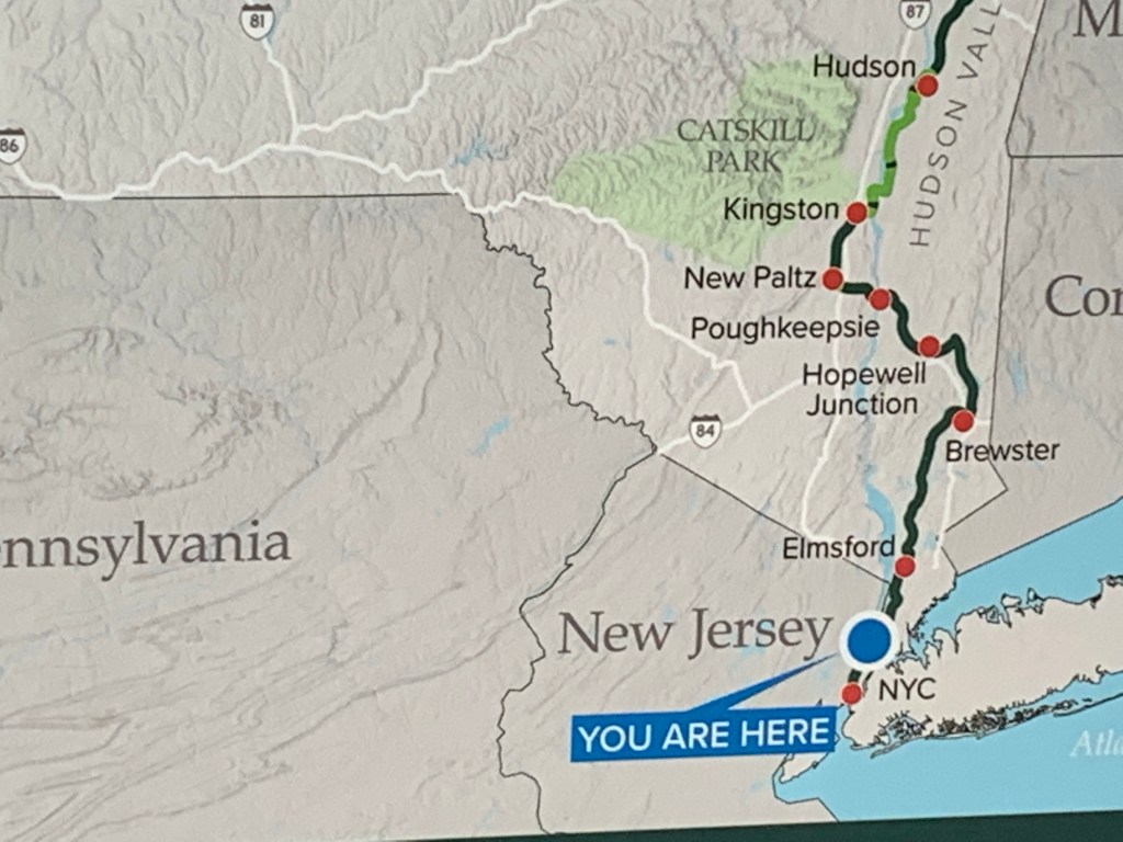 The next morning we went down to breakfast and again were glad we’d made the change of hotels. We had a good breakfast and chatted with people who were competing in the Westminster Dog Show which was happening in nearby Tarrytown. The Westminster is usually held in the city around Valentine’s Day, but it is just getting back after a couple of years of Covid delays and cancellations. It was a kick to see some very beautiful (and they knew it) dogs walking the hallways of the hotel. Another couple asked about our biking (we were kitted up for the coming day) and we had a great conversation with them – she asked if she could take our picture. It was a nice way to start the day.