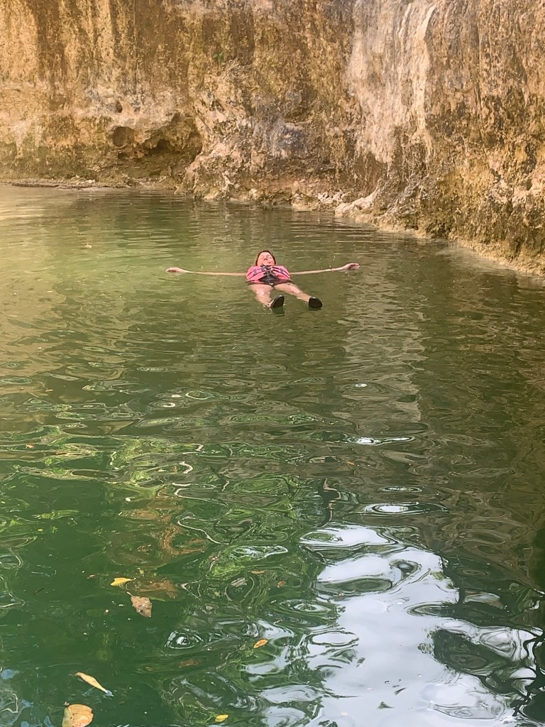 We made it to the cenote, checked in and had a good time for an hour or so, swimming and ziplining – ok that was just Dan, the most viejo of the zipliners that day. In fact, I stood in line behind a muy valiente five year old girl and chatted with Francisco, the attendant.